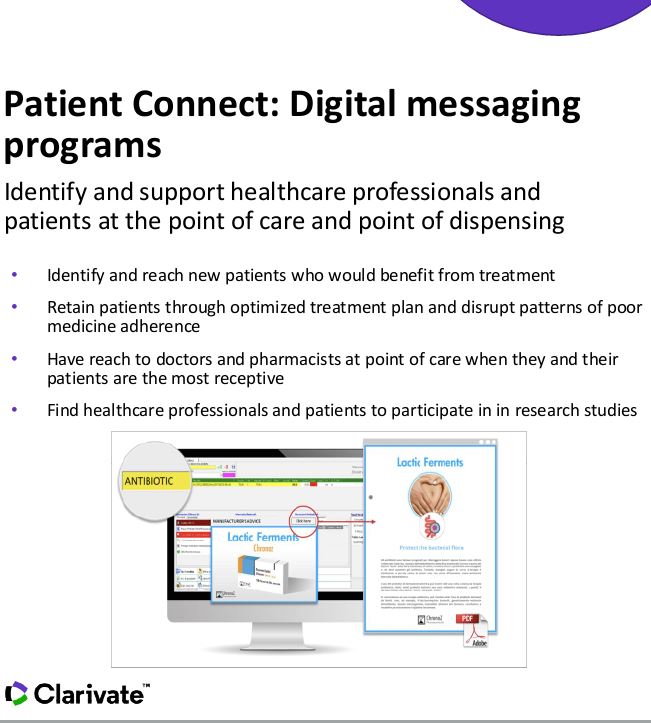 Identify and support healthcare professionals and patients at the point of care and point of dispensing.