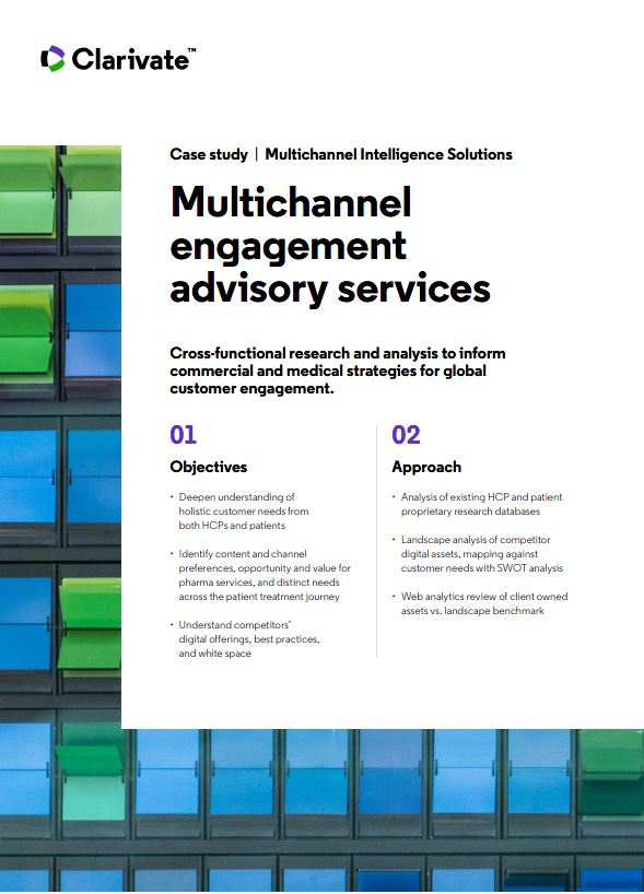 Multichannel engagement advisory services showing cross-functional research and analysis to inform commercial and medical strategies for global customer engagement.