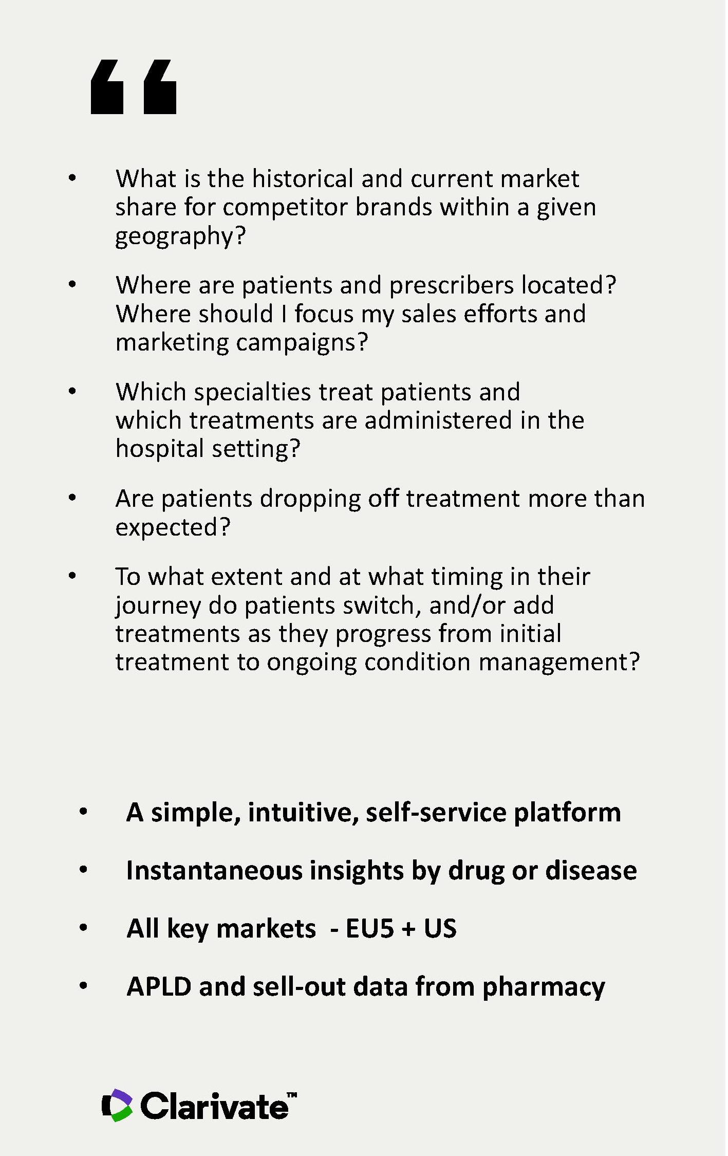 The Clarivate team of experts will be at Pharma Europe in Barcelona and are keen to meet you to discuss how we can help you improve patient outcomes & maximize uptake of your brand.